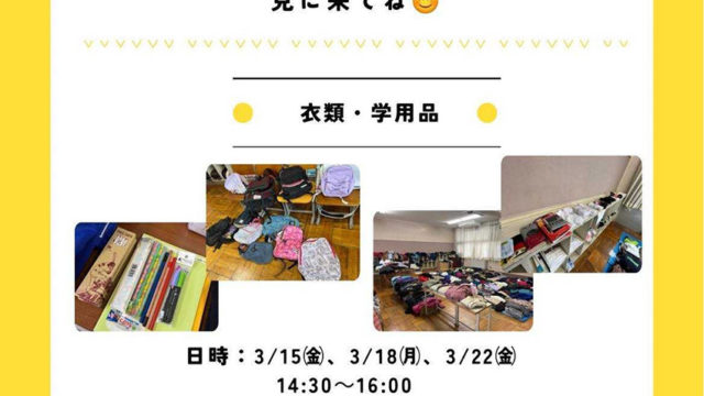 3/15・18・22子ども服・学用品おゆずり会